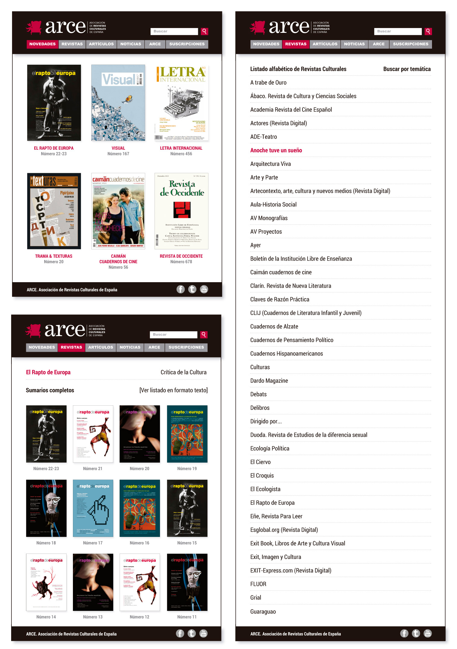 Diseño y programación de app iOS / Android para la Asociación de Revistas Culturales de España. Dirección de proyecto. Colaborador: BillionLabs. Cliente: ARCE