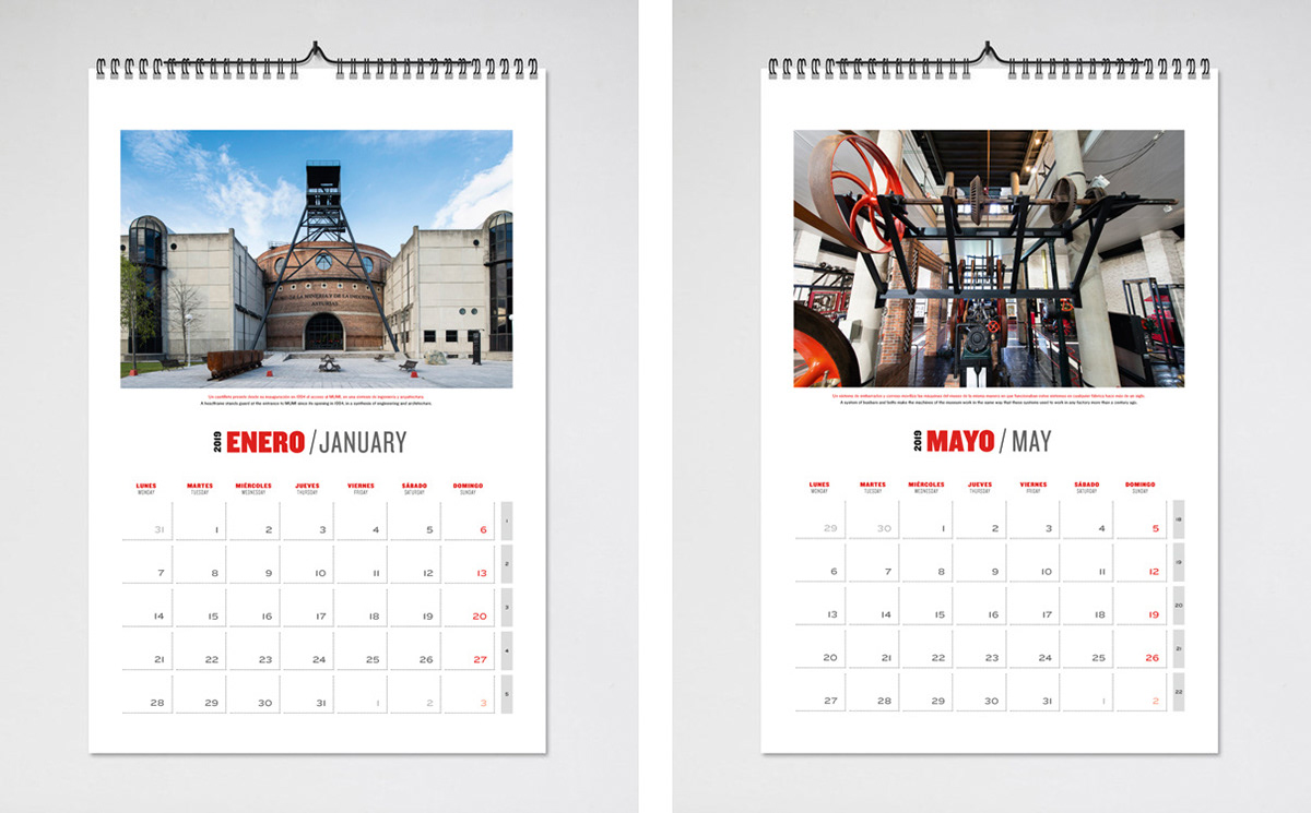 Diseño de calendario para el Museo de la Minería e Industria de Asturias. Cliente: MUMI / Fundación Maxam