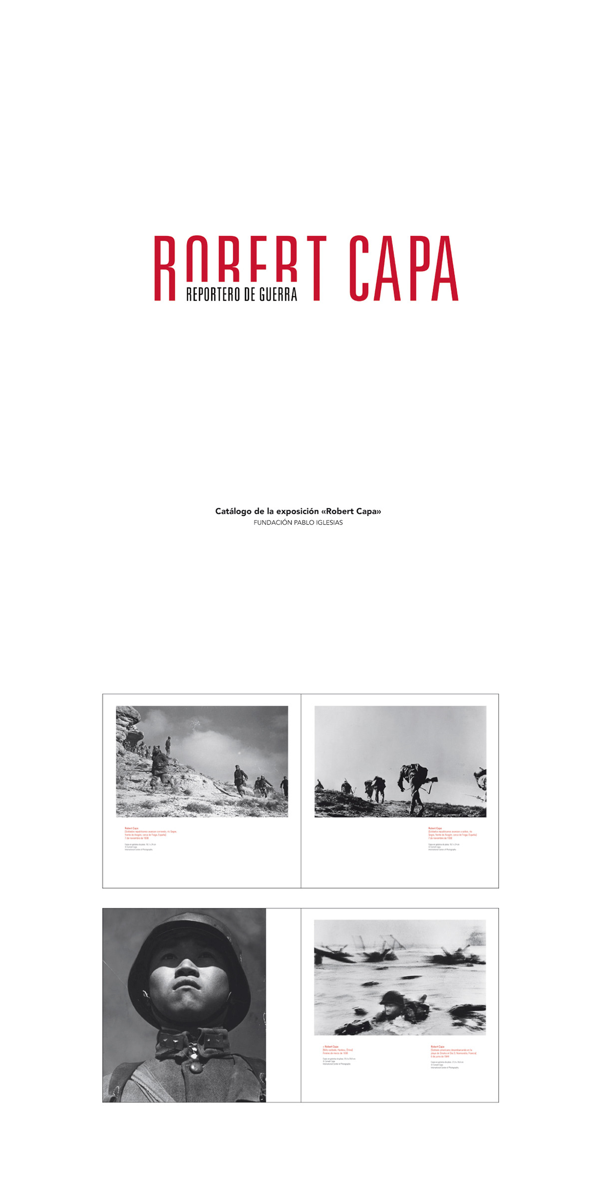 Diseño, maquetación y producción gráfica del catálogo y elementos promocionales de la exposición «Robert Capa». Cliente: FUNDACIÓN PABLO IGLESIAS