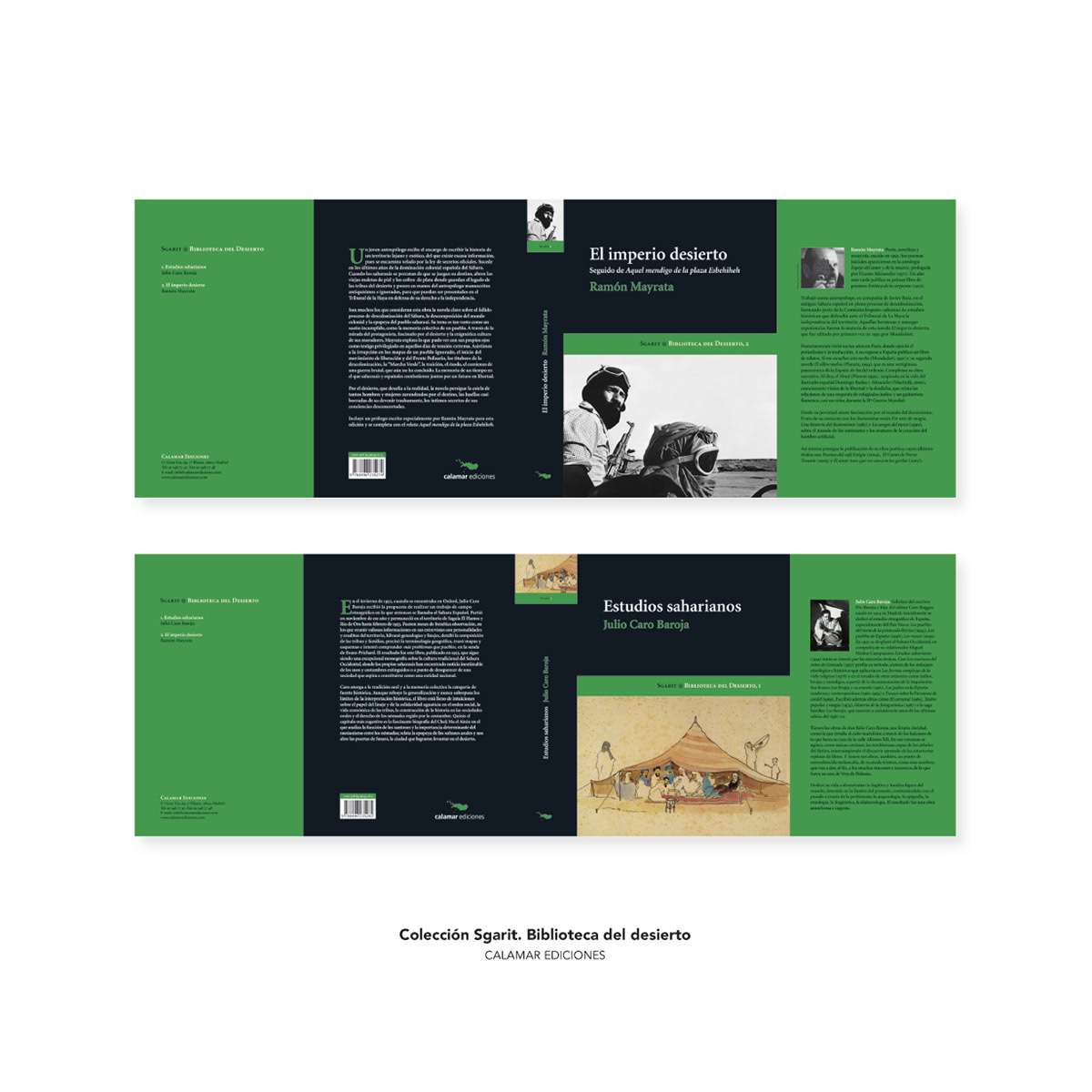 Diseño, maquetación y producción gráfica de la colección de libros «Sgarit. Biblioteca del desierto». Cliente: CALAMAR EDICIONES