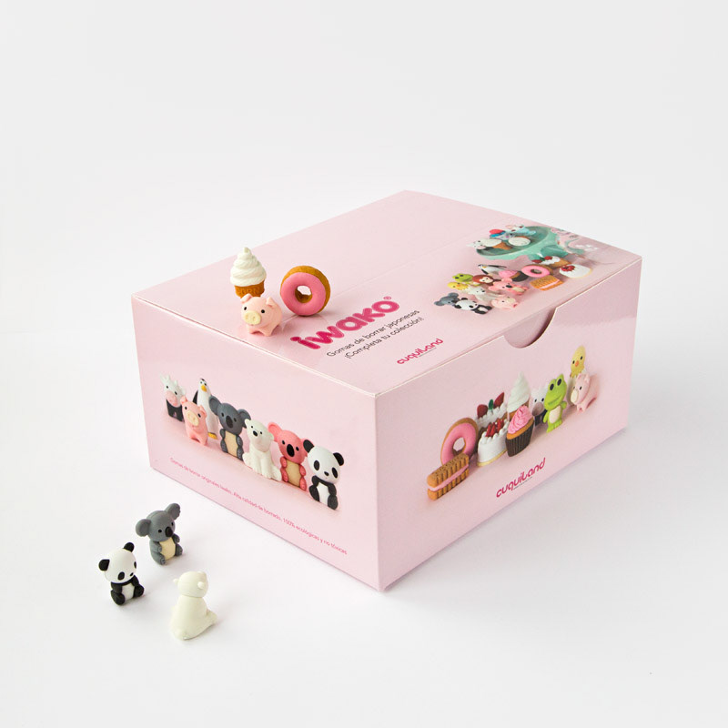 Diseño de packaging de Display de gomas de borrar japonesas. Cliente: CUQUILAND