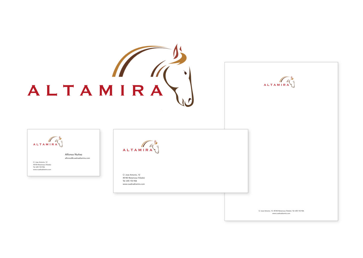 Identidad corporativa para cuadra de caballos de carreras. Cliente: Altamira