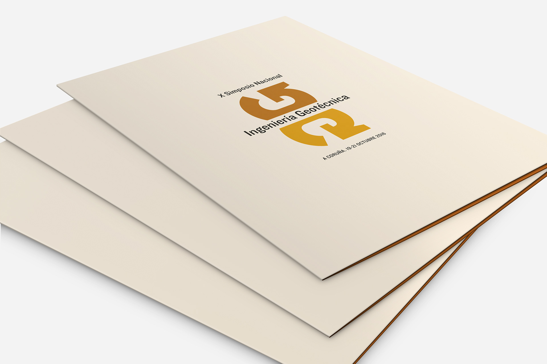 Diseño de imagen para el X Simposio Nacional de Ingeniería Geotécnica. Aplicación a diferentes elementos. Producción gráfica. Cliente: CEDEX