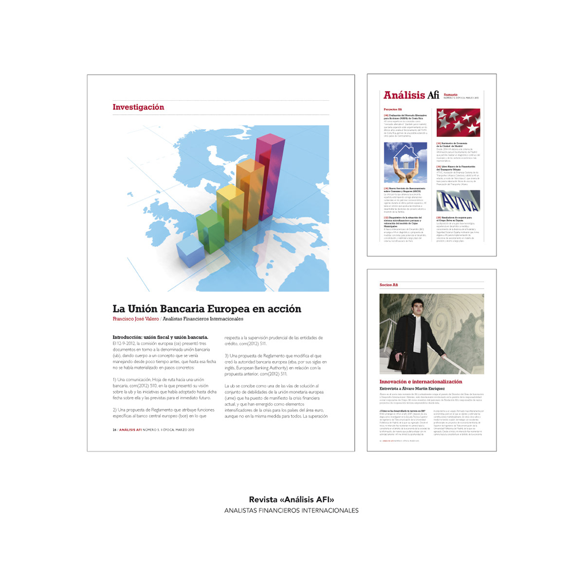 Diseño gráfico y maquetación de la revista económica «Análisis AFI». Cliente: ANALISTAS FINANCIEROS INTERNACIONALES